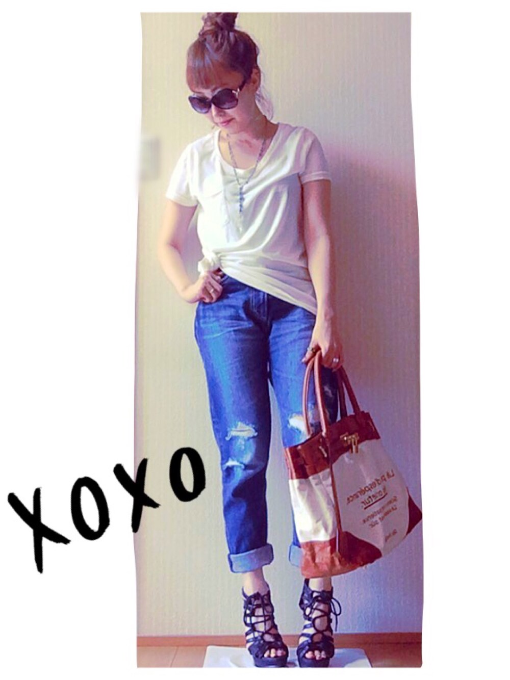 もう夏も終わりですね🍉 8月last😁 TシャツはThe Rolling Stonesとのコラボで 🔙がめちゃ可愛いんです😘✨ 🔙は小窓にて💋
