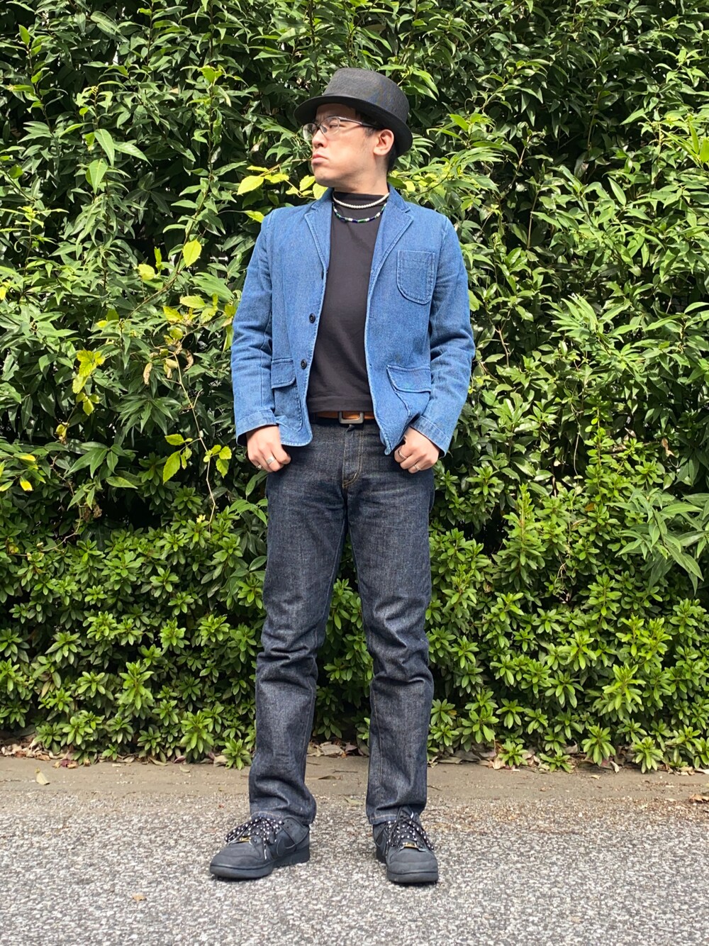 melOnのテーラードジャケット「【2nd/セカンド5月号掲載】SONTAKU/ソンタク 経年変化が楽しめるインディゴ刺し子ジャケット」を使ったコーディネート
