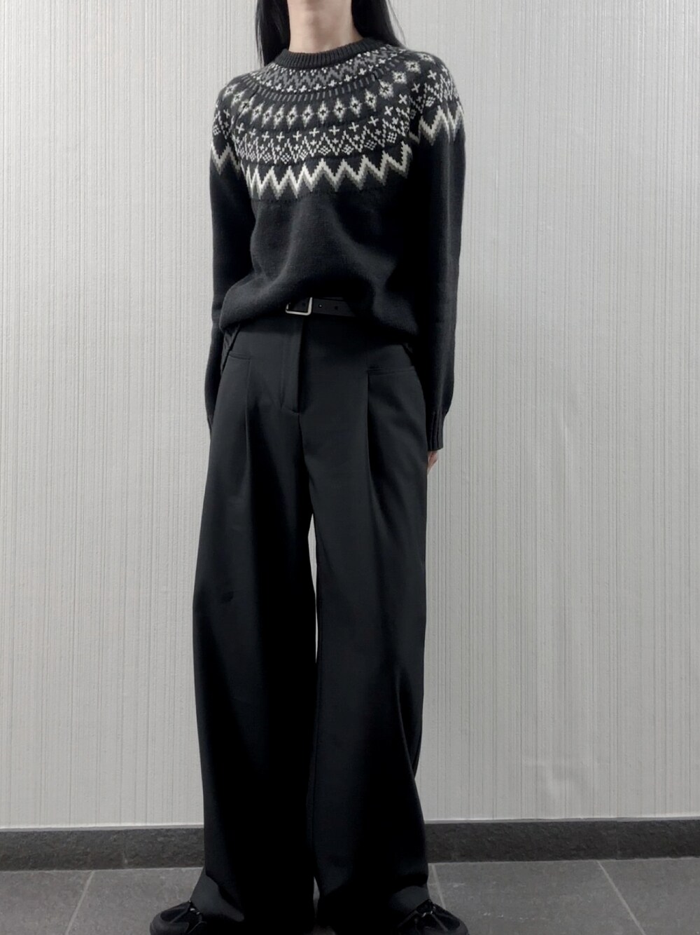 グレー系のニット/セーターを着用したレディースの秋コーディネートの3枚目の写真