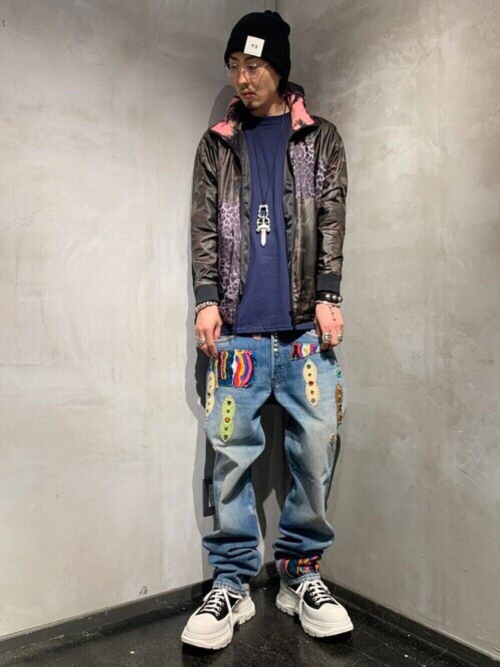 Yu-m@‼︎のブルゾン「【別注】1piu1 uguale3/ウノ ピゥ ウノ ウグァーレ トレ/113 スポーツ クレイジー柄ナイロンブルゾン」を使ったコーディネート