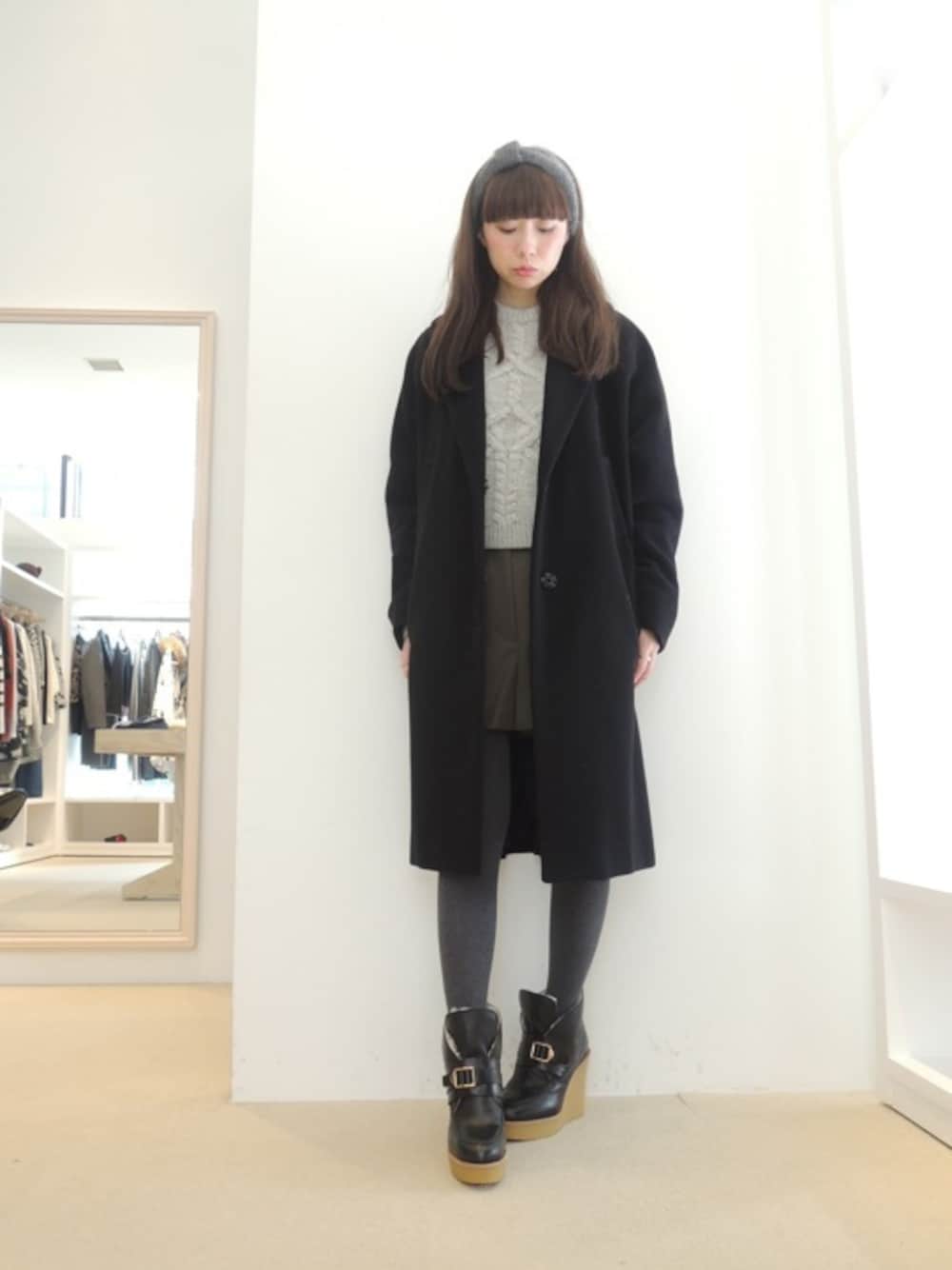 FLONTVIOROスタッフのチェスターコート「ウールアンゴラダブルポケットコート」を使ったコーディネート