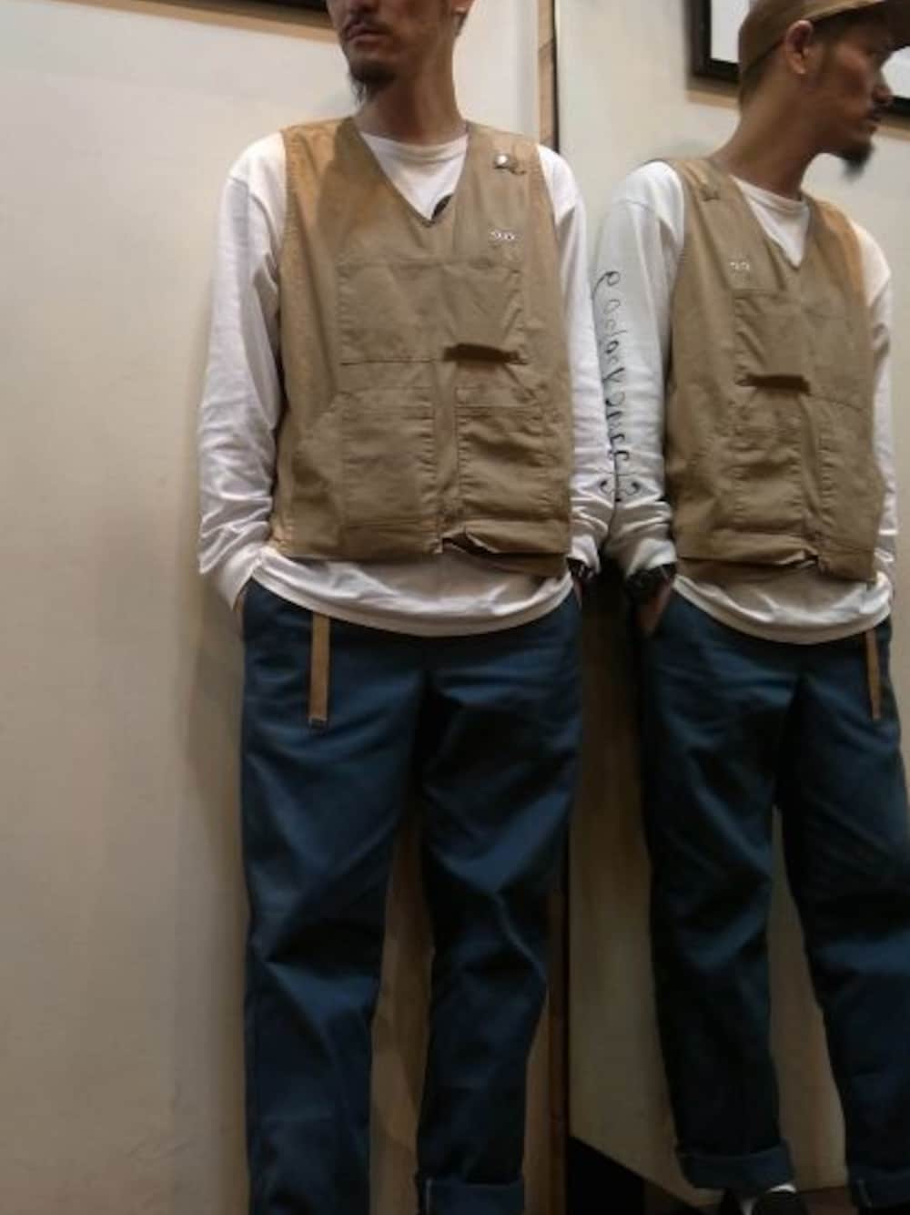 ●ベスト:【Mountain Equipment/マウンテンイクィップメント】 Utility Vest(BEIGE/Lサイズ) ●インナー:【Niche/ニッチ 】 Diskah ×Niche. ロンT(WHITE/Lサイズ) ●パンツ:ディッキーズ 874ワークパンツ(W33-L32) ●帽子:【POTEN/ポテン】 DOUBLE SUEDE BASEBALL CAP(BROWN/Lサイズ) ●靴:【MANEBU/マネブ】 VOVO NUBUCK(BLACK/サイズ43) ※180cm68kgでの着用サイズを記載しております。