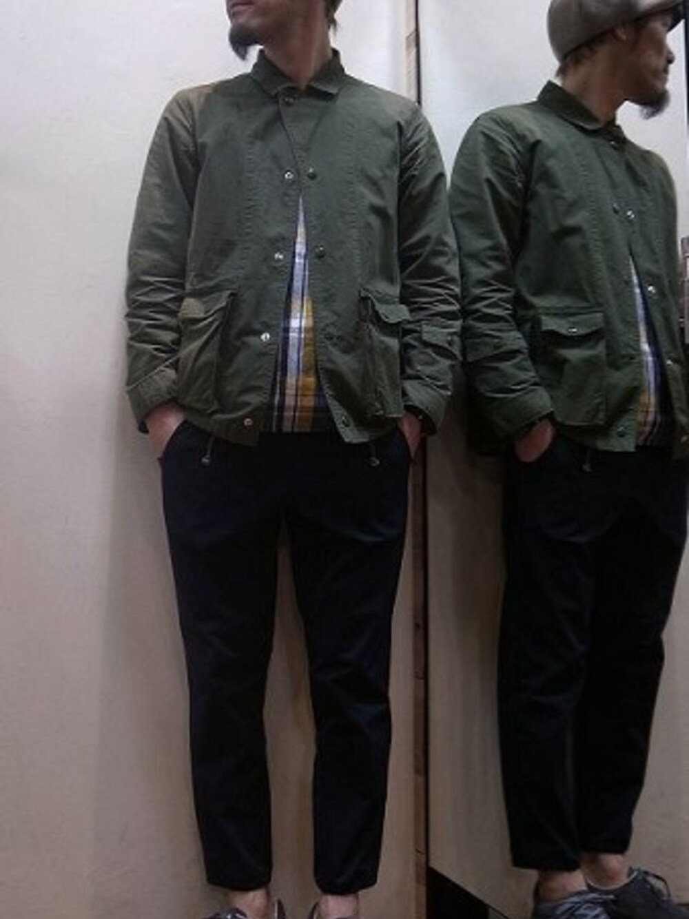 ●トップス:【Niche.+/ニッチプラス 】 Ripstop Stream Coat(OLIVE) ●インナー:【Niche/ニッチ】 Trabajo Pulover Shirts(Mサイズ) ●パンツ:【ACTS/アクツ】 2WAYストレッチ 8分丈パンツ(ネイビー/Lサイズ) ●帽子:【NASNGWAM/ナスングワム】 GRANT CAP/キャスケット ●靴:【SUVSOLE/サヴソル】 RUN 1S(GRAY/10H) ※180cm65kgでの着用サイズを記載しております。