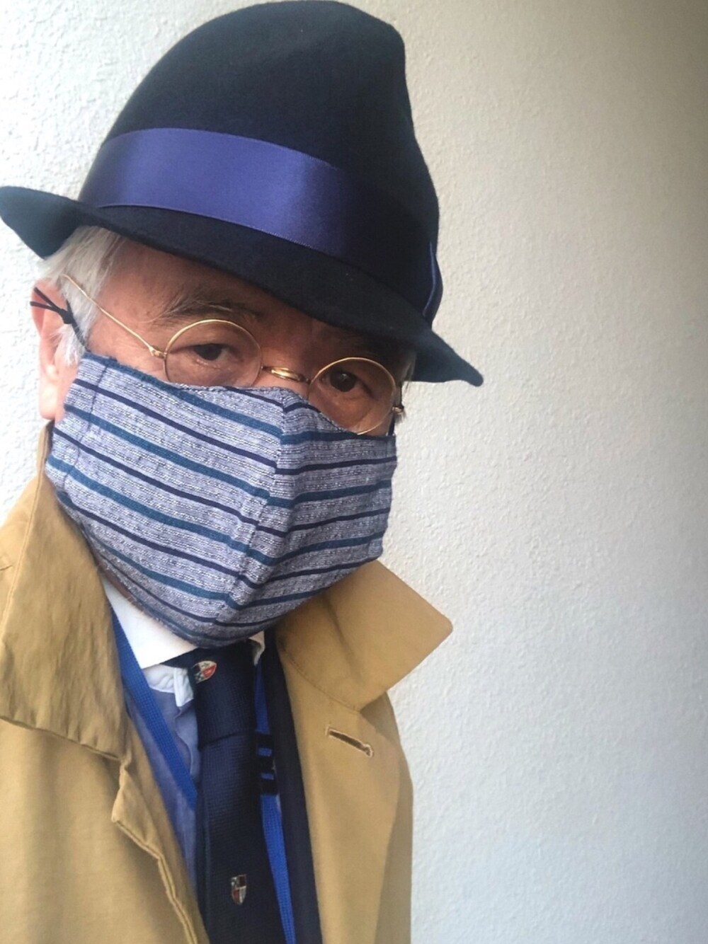 マスクコーデ❗️ たまにはネイビイストライプマスクで出かけようかな。^_^