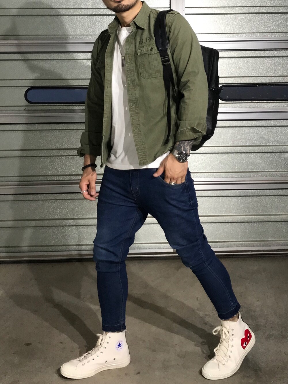 KenToのデニムパンツ「ダメージ メンズ スキニー デニム パンツ」を使ったコーディネート