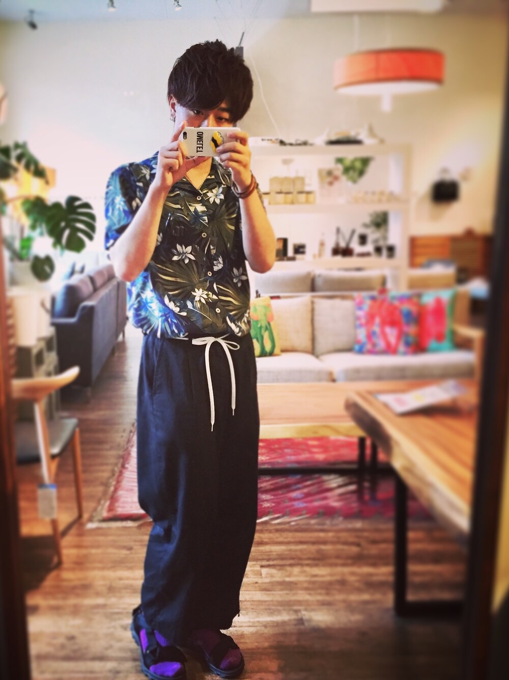 こんちゃ! いや~雨やばいっすね( ˙-˙ ) こんな日にサンダル履いてきたわいアホやな~(笑) 今日は柄シャツとシューレースワイドパンツを合わせたコーデです( ᐛ )و 柄を映えさせるために、他はシンプルにまとめて、パンツにはベルトの代わりにシューレースを😙 タックインして大人っぽくしました👐 足元はスポサンにカラー靴下を合わせてアクセントを+ 雨の日じゃなきゃいい感じなんだろうなぁ~😭 明日はTwitterのプレゼント企画で当たった古着のコーデを載せマース✌(・_・)✌ ほんじゃまた✋
