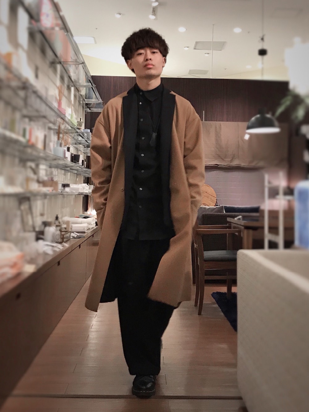 髪切りたての頃のやつ ジャケットのえりをノーカラーコートの上に出してアクセントに