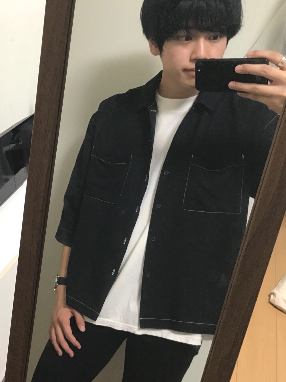 黒メインでコーデしてみました😎 暑がりなのでなかなか秋服きれない🤤