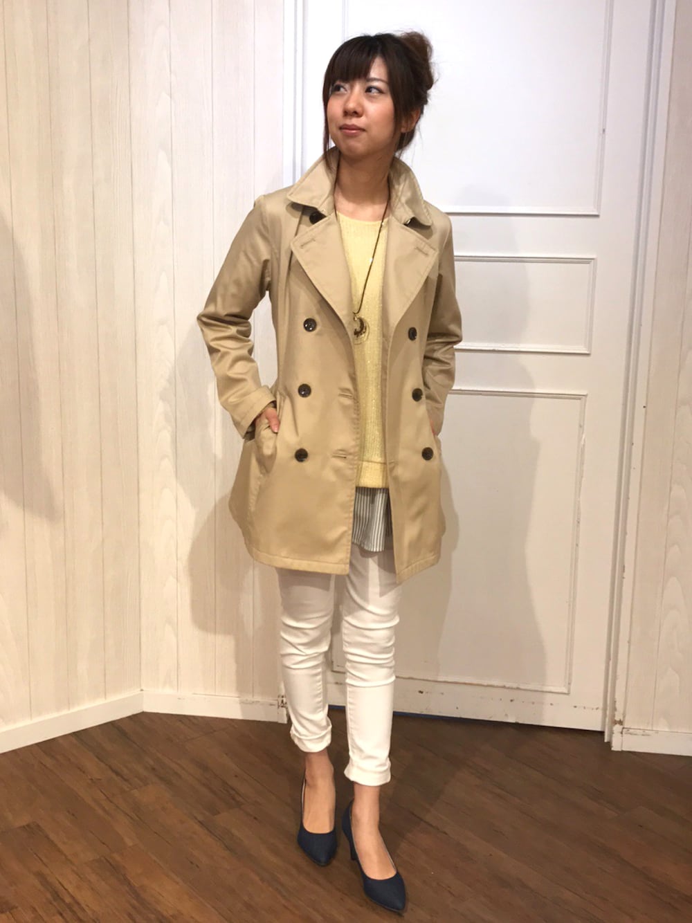 いつも、いいねやフォローありがとうございます😊 気温も暖かくなってきましたね(*⁰▿⁰*)❤️ お出かけシーズンの春にぴったりのアウターで合わせてみました😆✨ 長すぎないトレンチコートで動きやすく、スッキリ見えます! 中ゆったり目のニットとも相性バツグンです😄