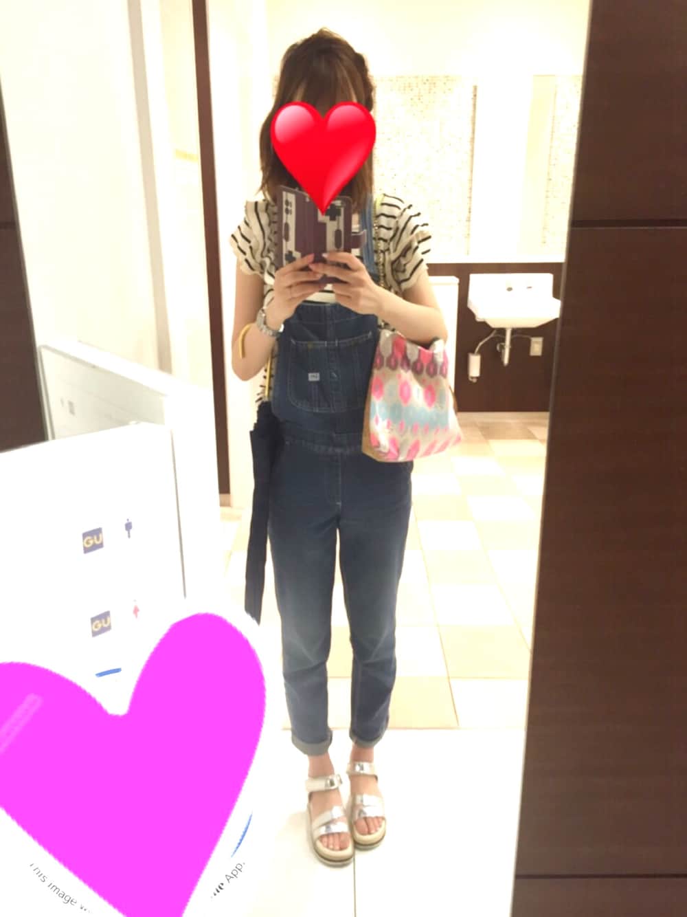 歩きやすくオーバーオール😃 サンダルは激安500円🌟 大きいGU行って色々買いたかったけど荷物になるからやめたー。来月セールだし我慢しよっと