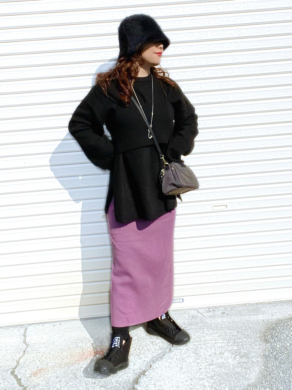 おはようございます❄️ _いつもありがとうございます_ 今日のコーデ👗 BLACK✖️Purple パーシエンスのニットとバケハを使ったコーデ ニットはビスチェとセットでシルエットもゆったりめで、着やすい🩵 バケハはこんなファーバケハが欲しくて🫶🏻 お気に入りです♡ per sist enceの 🏷️ 杢起毛糸ビスチェセットプルオーバー 🏷️ アンゴラベルハット いつもイイネや素敵なフォルダinなど ありがとうございます🥰🫶🏻