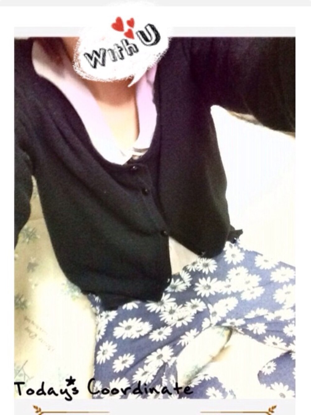 昨日のコーディネート 見にくい(u_u) カーディガン 不明 ブラウス (薄紫) しまむら パンツ GU 見にくいけど、白プチラメ靴下に白パンプスをあわせました♢