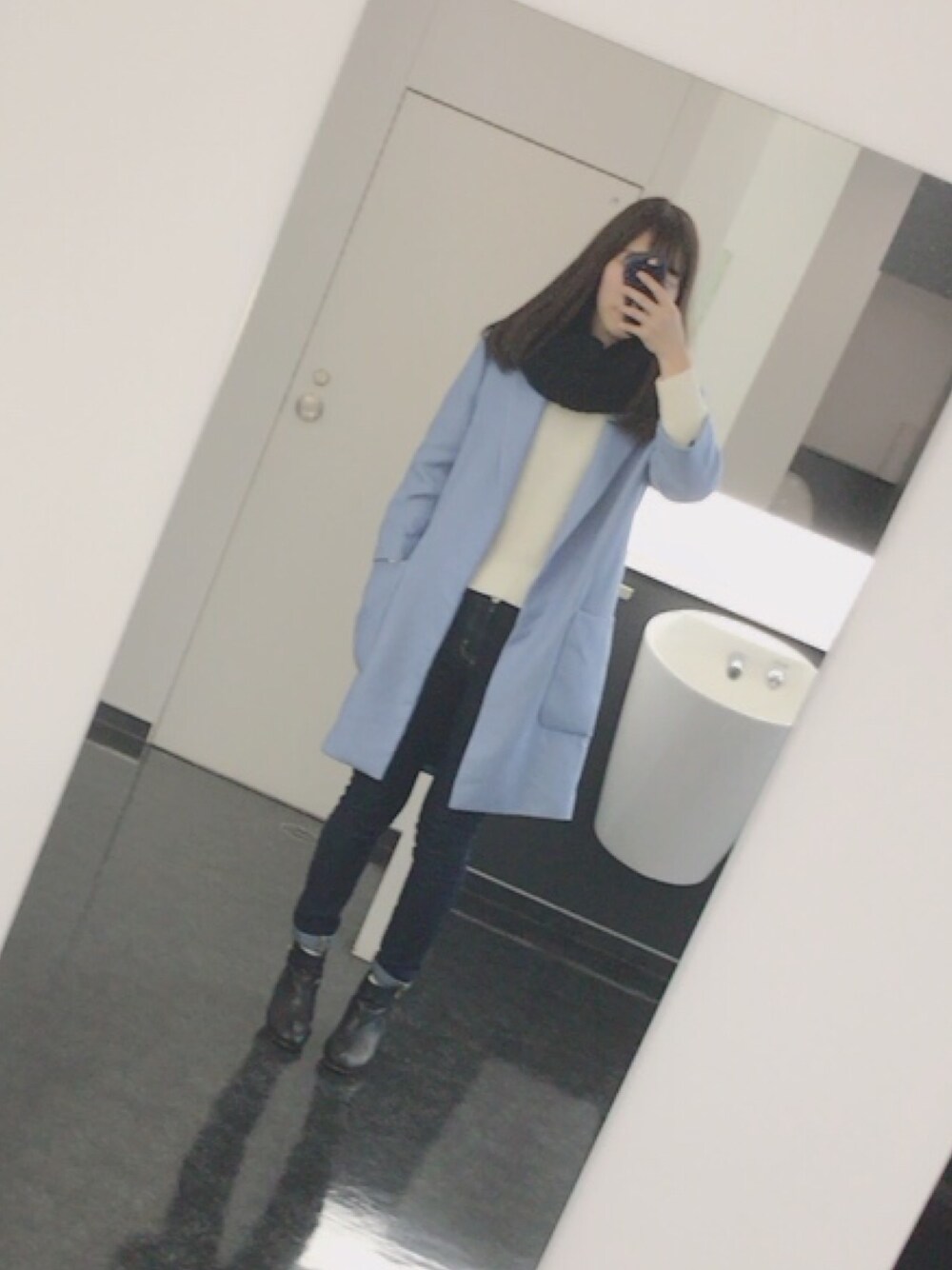 水色のコートがお気に入り💕💕今日も寒い❄️