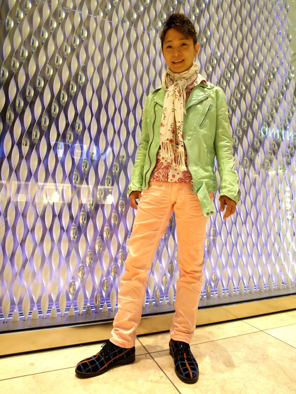 qkのライダースジャケット「モークス ペパーミントグリーン」を使ったコーディネート