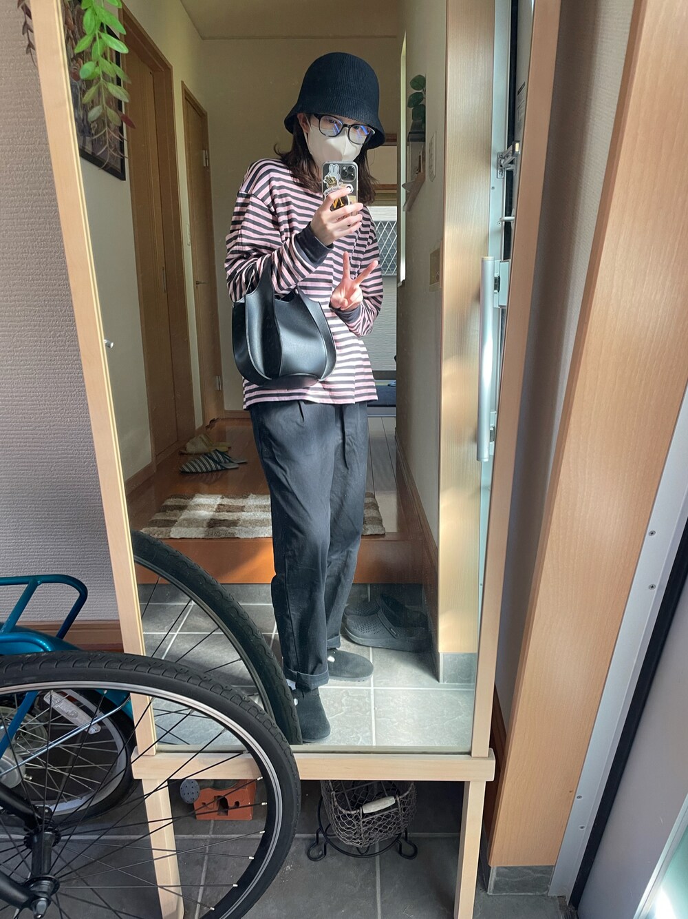 休日のすっぴん起きたて隠しの、やる気なしコーデです😅