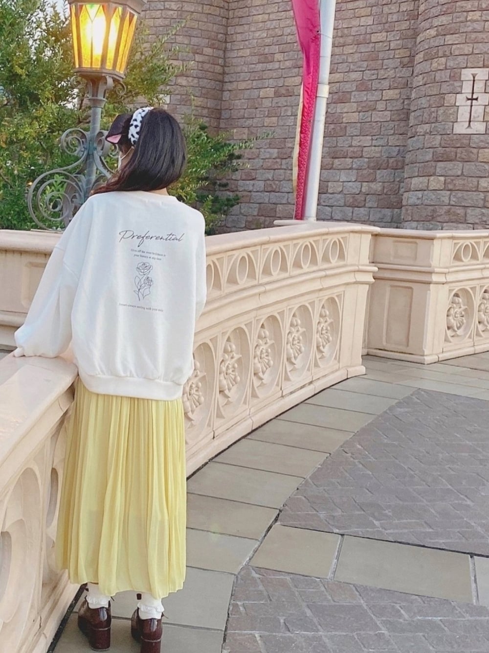 2020/10/30🥀 今日はDisney Landにいきました🐭🏰 一応ベルコーデってテーマで薔薇のバックロゴと黄色のスカートにしたんですけど肝心のカチューシャが売り切れ、、、😢 次回行くときは絶対買いたい🥺 トップス→バックロゴ/スウェットプルオーバー…INGNI ボトムス→サテン/プリーツスカート…INGNI 靴下→折り返しレザー風フリルとパール付きクルー14cm…tutuanna 靴→ボリュームソールレースアップシューズ…allamanda Instagram→@girl_code_diary