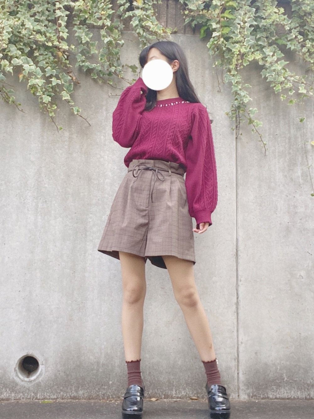 2020/11/17♥️ 以前ジャンスカに合わせて着たハートケーブルのトップスです❤︎ フロント部分もしっかりハート柄に編まれてて可愛いですよね♡ 合皮のチェック柄キュロットと合わせて今年のトレンドも抑えられます 腰回りのシルエットが気になる方もカバーできるのでおすすめです◎ 今日のアウターはタグだけ付けておくので良ければタップしてくださいね♡ トップス→ハートケーブル装飾付/ニット…INGNI ボトムス→合皮ヒモ付チェック柄キュロット/パンツ…INGNI 靴下→綿混リブ2連パール付きラメソックス17cm丈…tutuanna 靴→厚底ローファー…INGNI Instagram→@girl_code_diary