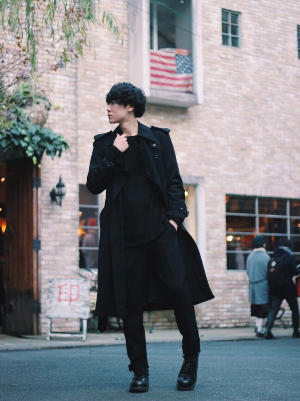 DOG KYOTO styling 古着のトレンチコートを主役に細身のシルエットを強調しました。 そして髪を切りました。笑