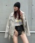 小都ミクのライダースジャケット「ビンテージレザーオーバーライダースジャケット」を使ったコーディネート