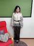 UNIQLOの黄色のニットの上に、チュールトップスをレイヤード。 ベルトでウエストマークをして、1番気に入っているベロアパンツを合わせて。 コートで防寒対策も◉