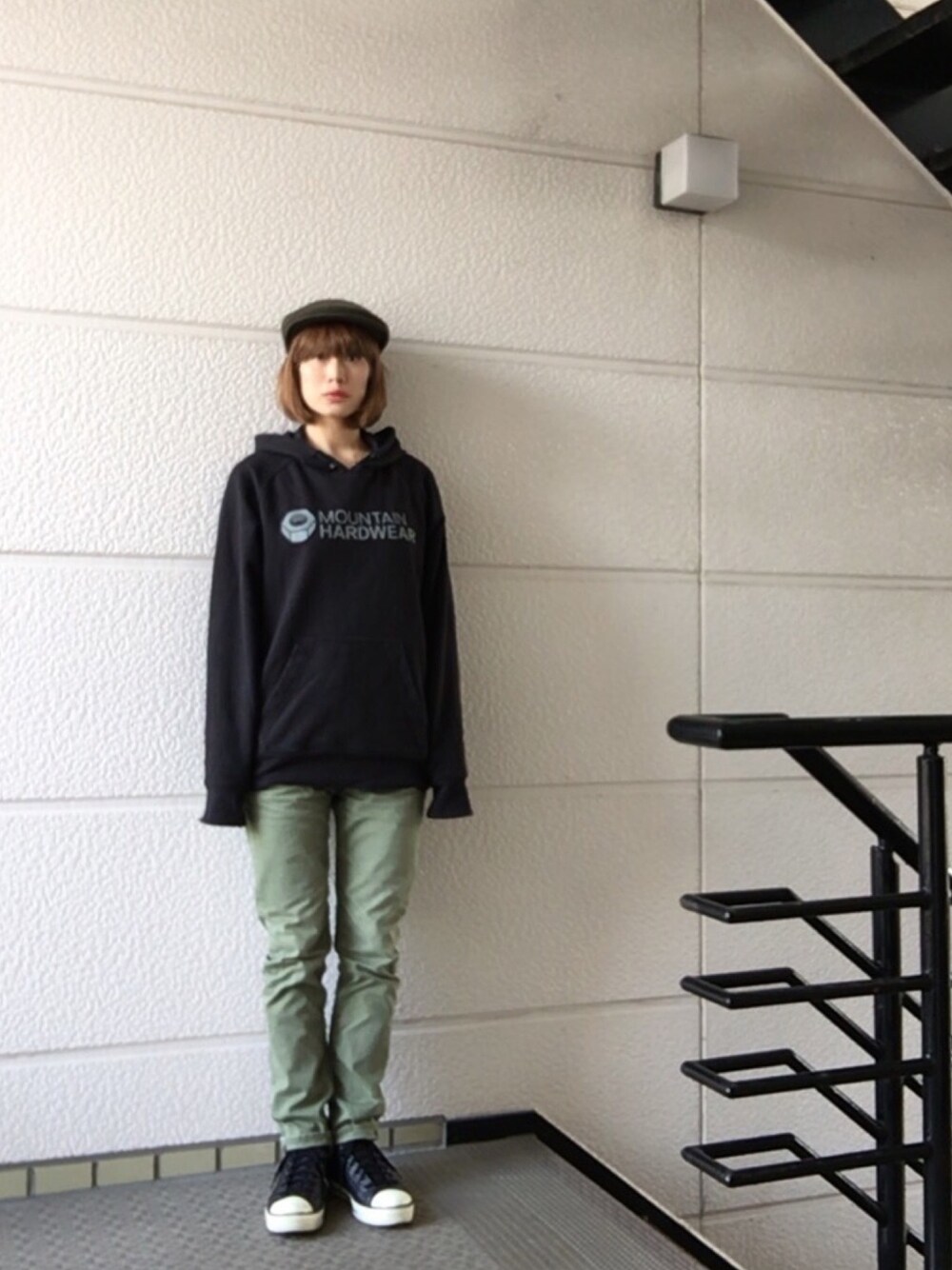乙でし٩( ᐛ )و ✩**・ ちょっと疲れ気味? オサレする気も起きず、ゆる〜ぅゥゥゥゥ。 カンゴのハンチング、今日は普通に正面かぶりっ。 パーカーは滑る時に愛用してるマウンテンハードウェア。 今年は雪どうかなぁ(´・_・`) 新しい板も欲しいしウエアも欲しいしっ。 小窓は前シーズンに高鷲にいたピンクのザク。 写真撮らせてもらった(๑´罒`๑) して、コンバース、エヴォ。 これ良いですよぉ〜(b*'Д')b☆ つか、wearでギア探すの一苦労だよね。 黒いコンバースなんて腐るほど出てくる。 もっと探しやすくして欲しい(´-д-`)