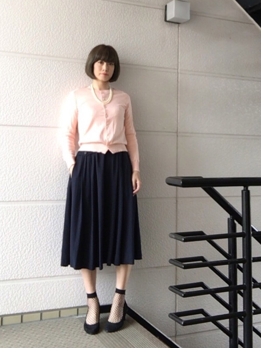 乙です٩( ᐛ )و ✩**・ なんか猫背ですね(´・_・`) ベビーピンクのカーディガンは、 tricot COMME des GARÇONS トリコっと ← つっこまれた時のことを、 きっと、一生思い出すんだろうなぁ。 スカートを黒にすれば良かったなぁ。 シアーなソックスの季節ですねぇ。 この時期しか履かないソックスを楽しみたいと思います。 髪の色がいい感じです(^ ^)♬ 今の色をキープしてたいけどムリなんだよなぁ。