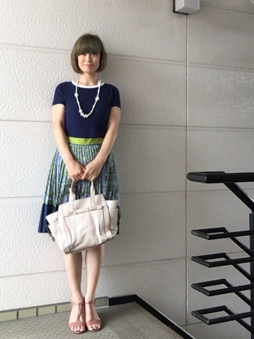 乙です٩( ᐛ )و ✩**・ にっこりしてみました(๑´罒`๑) 二の腕が太いですねっ。 リボン付きのパールのネックレスに目が行くから大丈夫? Tストラップが好きです♡ 今日のサンダルはけっこーヒールが高いので身長が170cm超えです。 ハイヒールって素敵୧(୧ˊ͈ ³ ˋ͈)⋆ೄ ほんと、履くだけでスタイル良くなるっ。