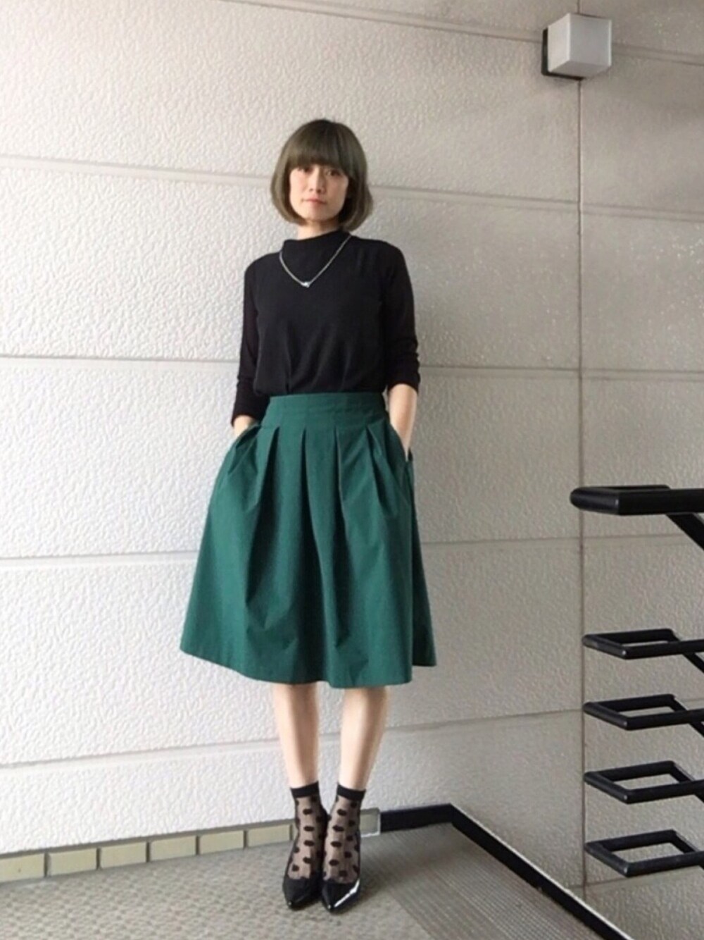 乙です٩( ᐛ )و ✩**・ 七分袖着てみました。 涼しくなってきましたよね(^ ^) 秋は1番好きな季節かも🍂 ドラマの高嶺の花、おもろいです(^ ^)! 石原さとみちゃんの衣装が好きっ♡ スタンドカラーやクラッシック?レトロ?な雰囲気のブラウスやワンピース、どれも可愛い♡ で、スタンドカラー着たくなった( ˙▿˙) このスカートほんと、優秀っ。 体型カバーすごすぎーっ。 黒×緑 も良いもんですねぇ🖤💚 つか、峯田氏演じるぷーさん、サイコー! 自分の中の不安感やもやもやを大丈夫だよって言って支えてくれる人。 私のゲーム仲間の彼氏がそうなんですけど、話を聞いててこっちまで幸せな気分になっちゃうもんね୧(୧ˊ͈ ³ ˋ͈)⋆ೄ