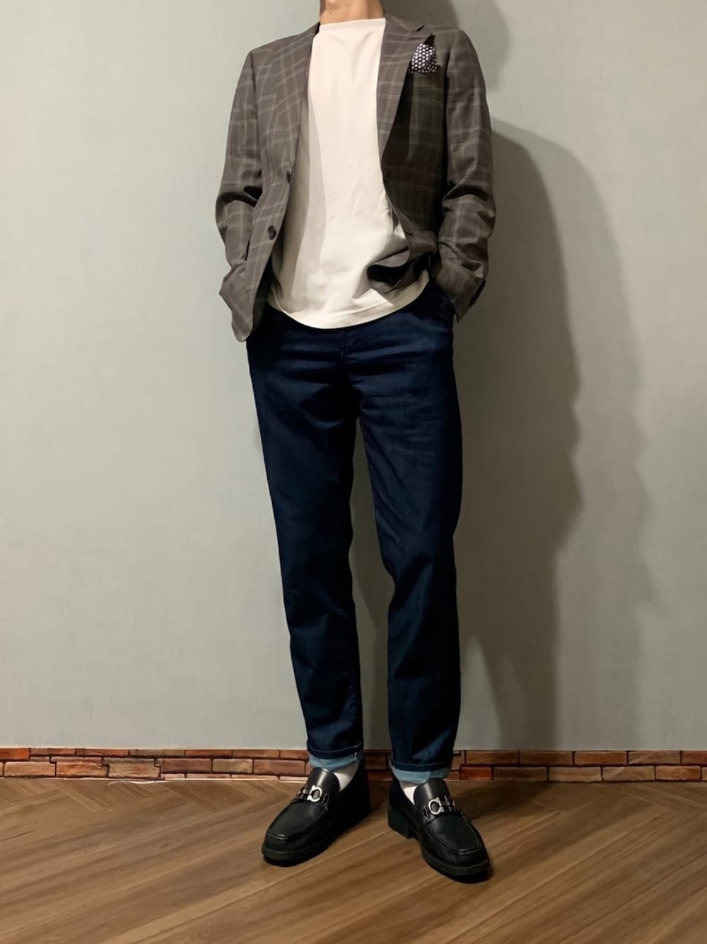 ジャケットにデニムの合わせもすっかり定番化してきましたね👀 まずは濃紺のデニムを選ぶと合わせやすいと思います🙆♂️ __________________________ スタイリングに関する疑問など、じゃんじゃん答えていければと思います✨ 気軽にコメントしてくださいな待ってます👔