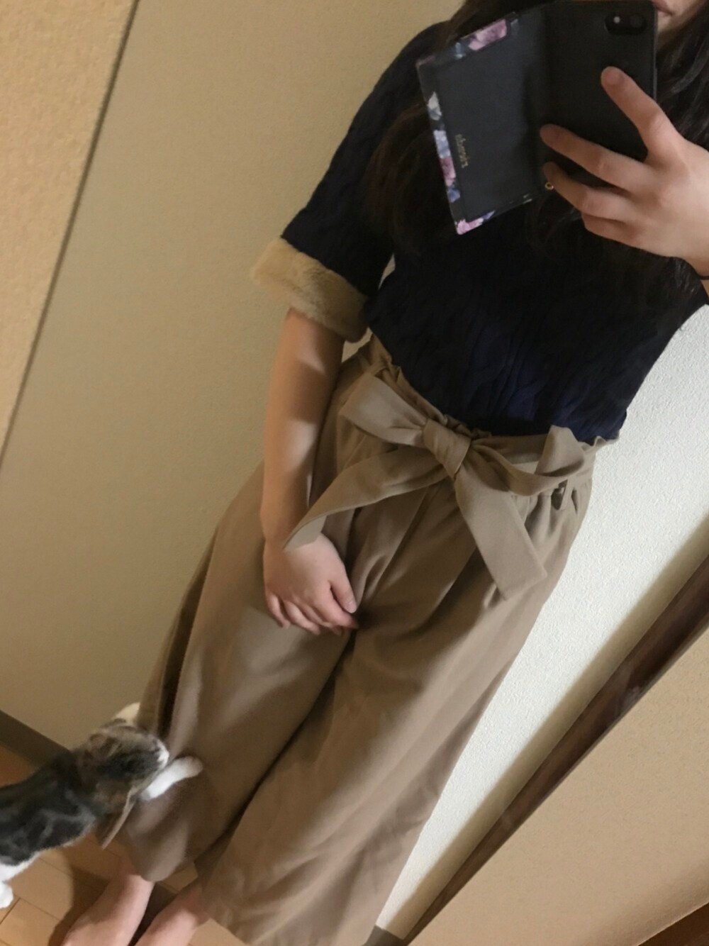 きよまろはうつりだがり?笑笑 あったか素材のズボンに ガリガリしてきた← きよまろがかわいかったので 載せます(*´◒`*)❤️ MIIAでまとめました🐱💕 トップスのファー部分と ズボンの色があっているからいいですよ〜 と店員さんに言われて買いました😘