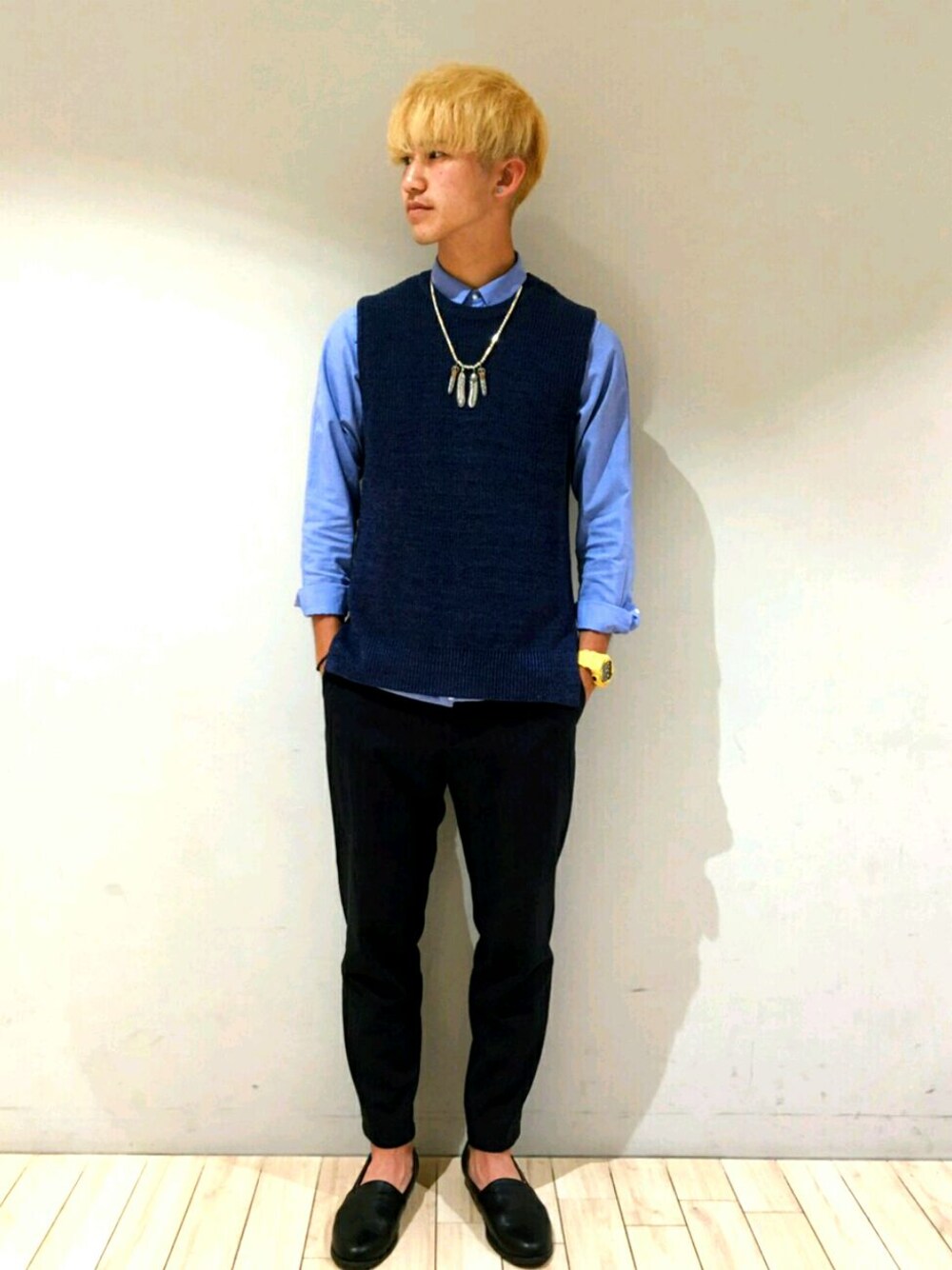 イメチェンで金髪のナイトゥーです♪ 全体的にブルーで統一してみました🐥 今年の夏はキレイめとストリートをうまく使いたいな♪