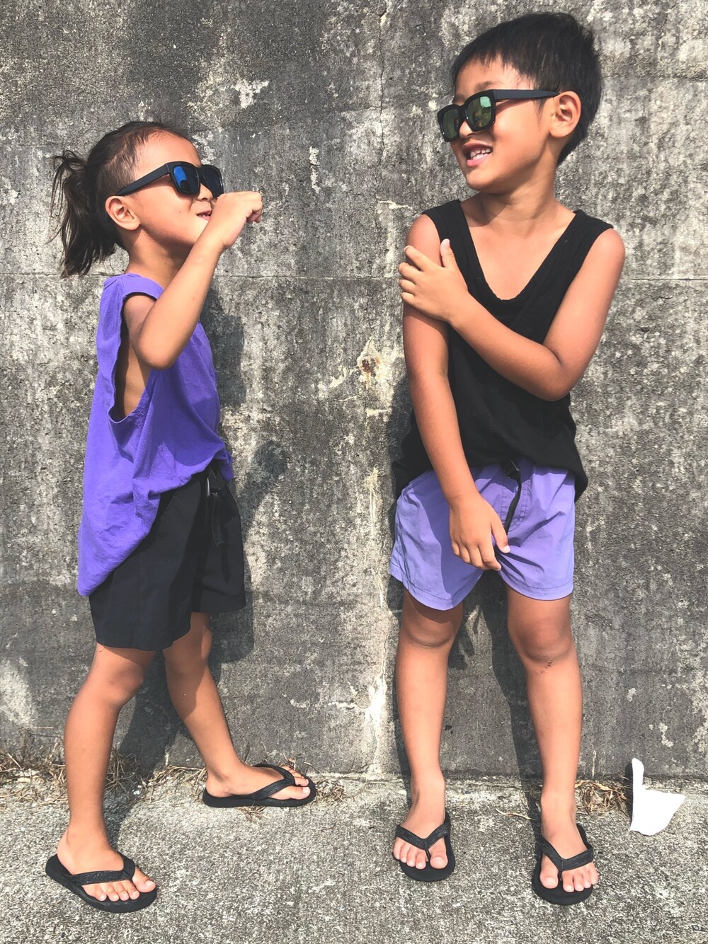 紫✖️黒のリンクコーデ 釣り🎣三昧で真っ黒な2人 夏はひたすらビーチサンダル