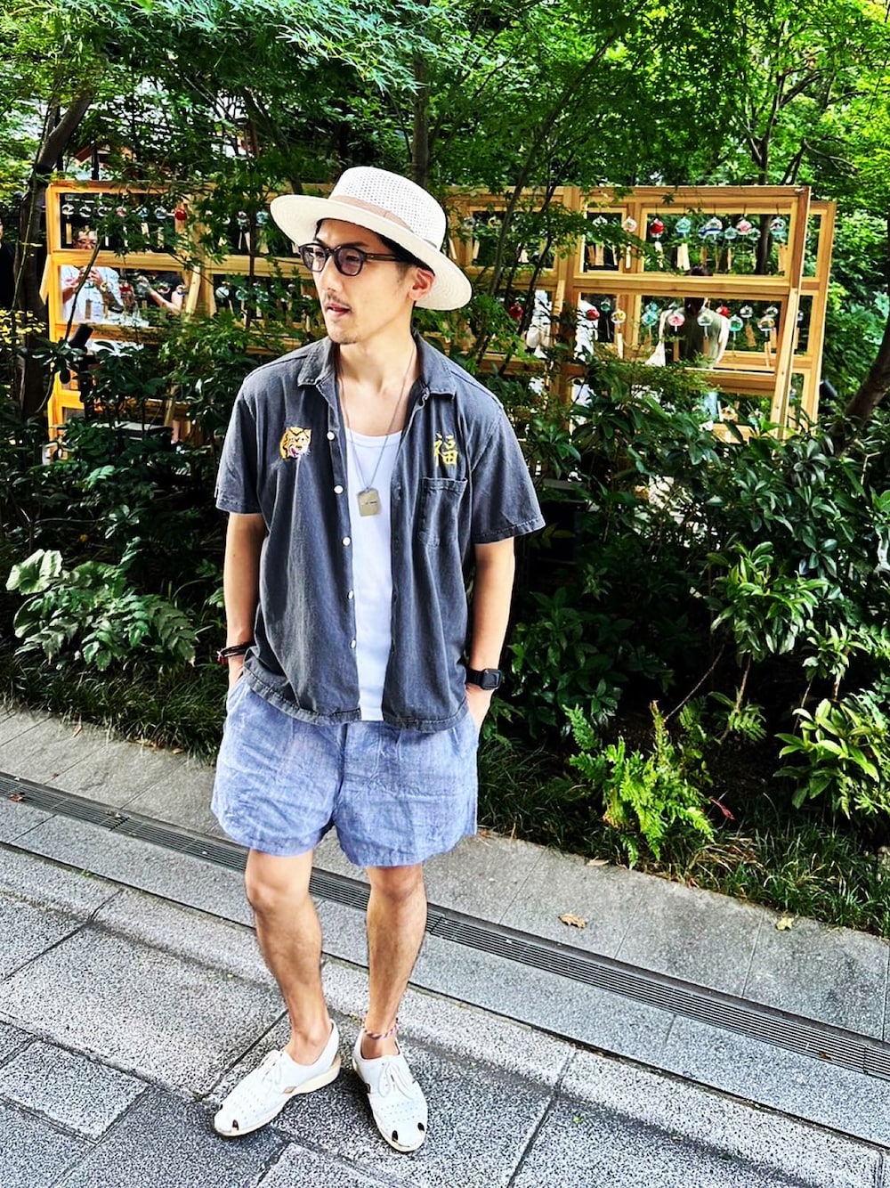 hat:#stetson shirt:#goodon pants:#フランス軍 shoes:#チェコ軍 #ootd #waiper #military #50s #60s #リネンショーツ #グルカサンダル #イタリア軍 #ドッグタグ #虎福