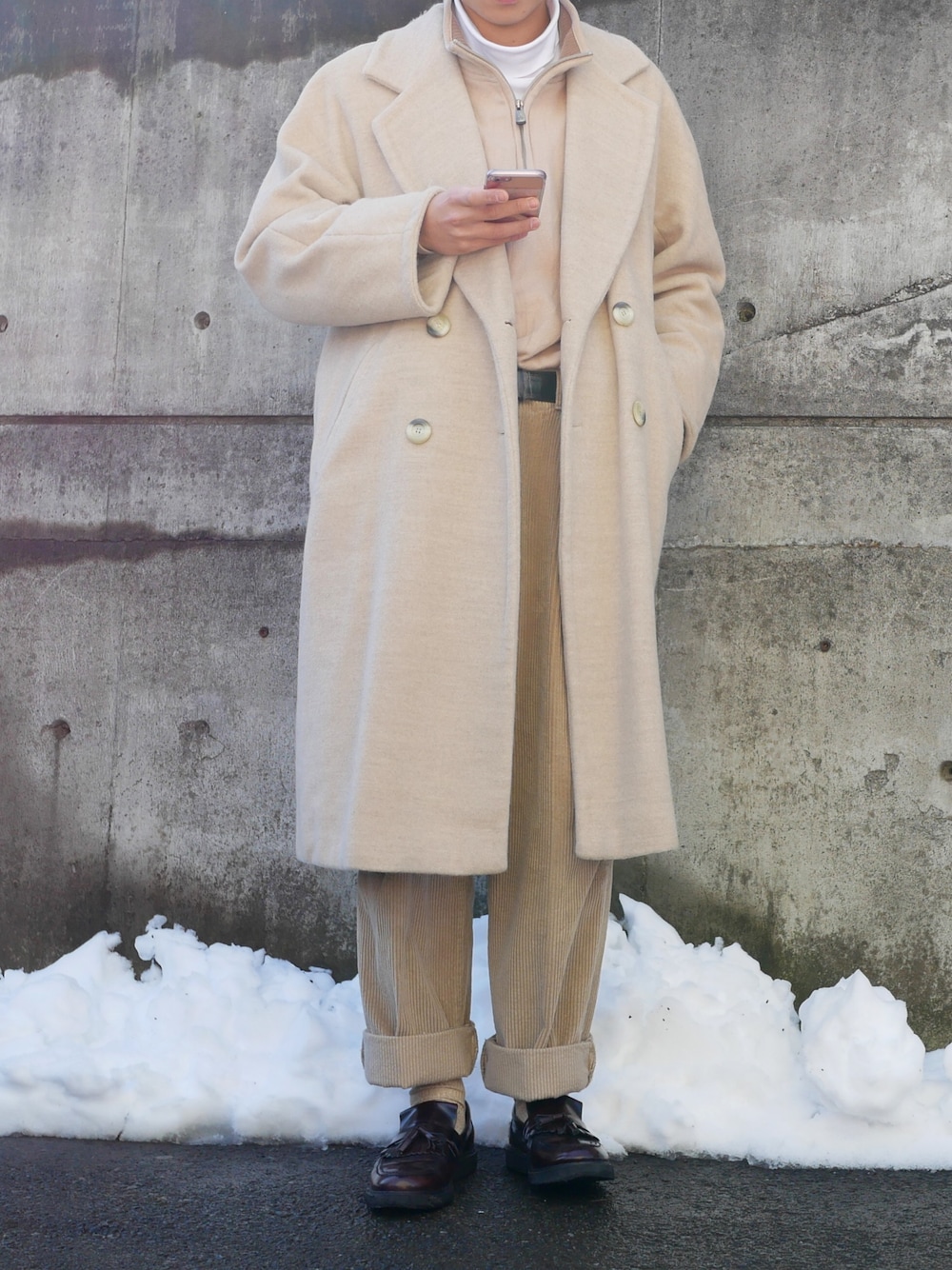 げんきのチェスターコート「made in Italy」を使ったコーディネート