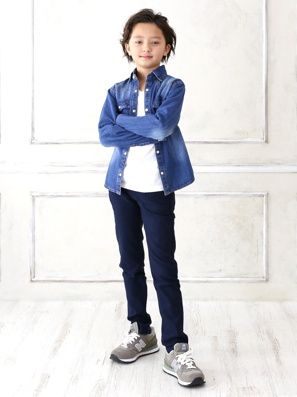 シンプルで着回しやすいデニムシャツに、ぴったり吸い付くシルエットのスキニーパンツで大人ライクなアメカジスタイルに。 休日や通学などのラフなコーデにオススメです♩
