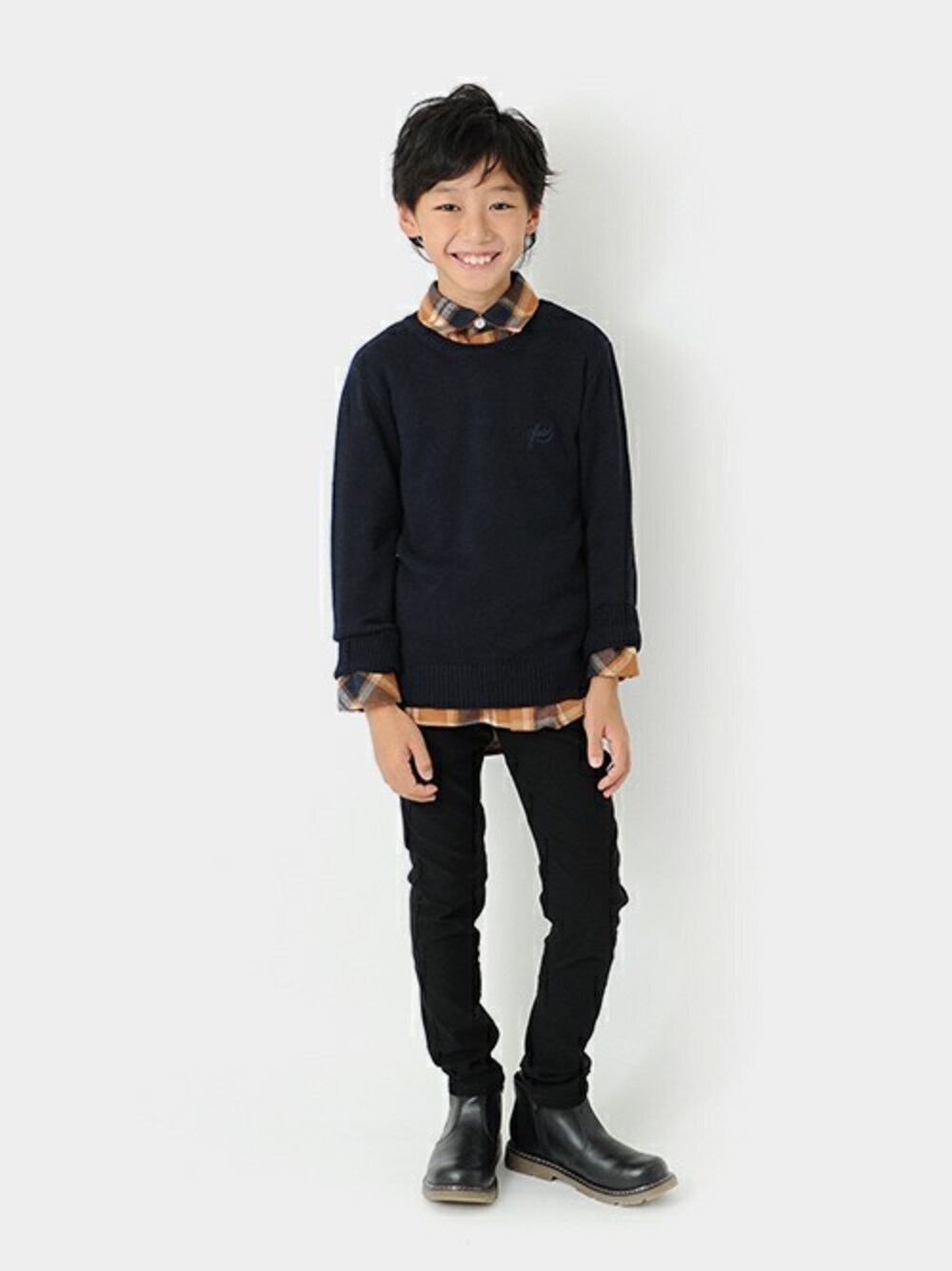 チェックシャツ×ニットのレイヤードSTYLEでキレイめな着こなしに。ボトムスはブラックのスリムパンツが相性抜群◎
