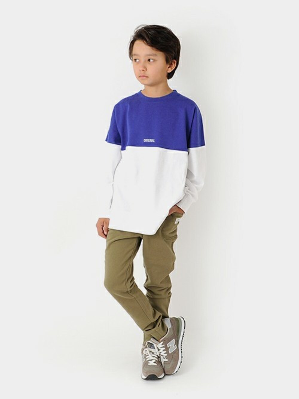 明るいトーンでまとめたカジュアルコーデ。ブルーのトップスが春らしさを感じさせてくれます♪フロントのロゴもコンパクトで子供っぽくならないのが◎
