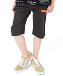 全体をダークトーンでまとめたかっこいいコーデ◎ トップスは総柄でホワイトのロゴプリントと、 アクセントの水色が軽さを演出してくれます☆
