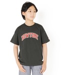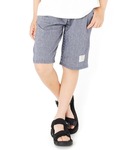 スウェット生地のハーフパンツにTシャツを合わせたラフなスタイリング♪ カレッジロゴとヒッコリー柄の組み合わせで、古着ライクなおしゃれ感を演出◎