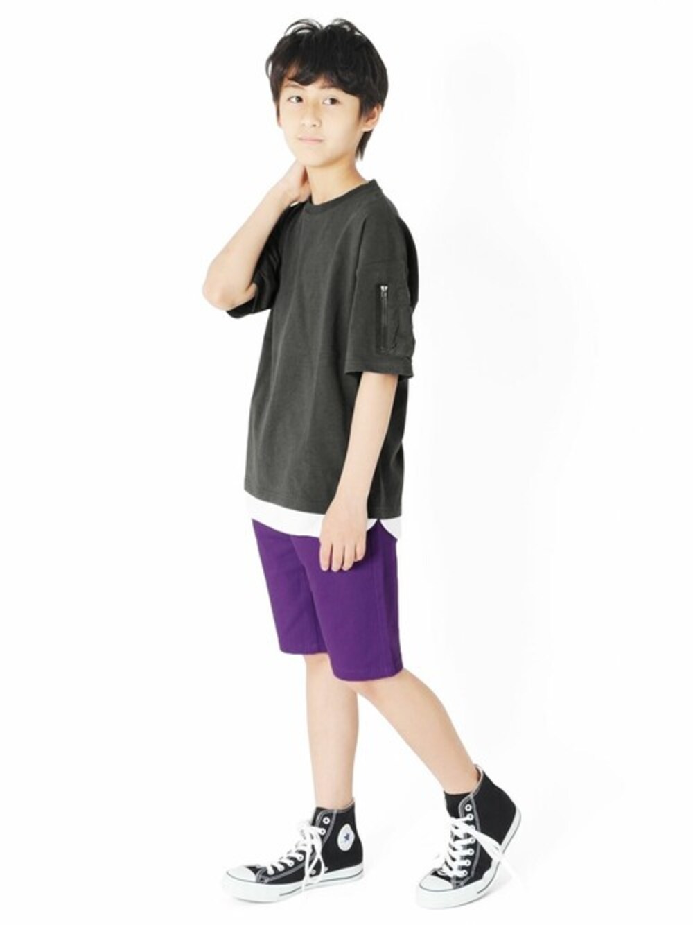 パープルのパンツも、 ダークトーンで合わせれば派手になりすぎず程よいアクセントとして取り入れられます◎ レイヤードとスニーカーの白で重くなりすぎず、 コーデに軽さを出してくれます♪