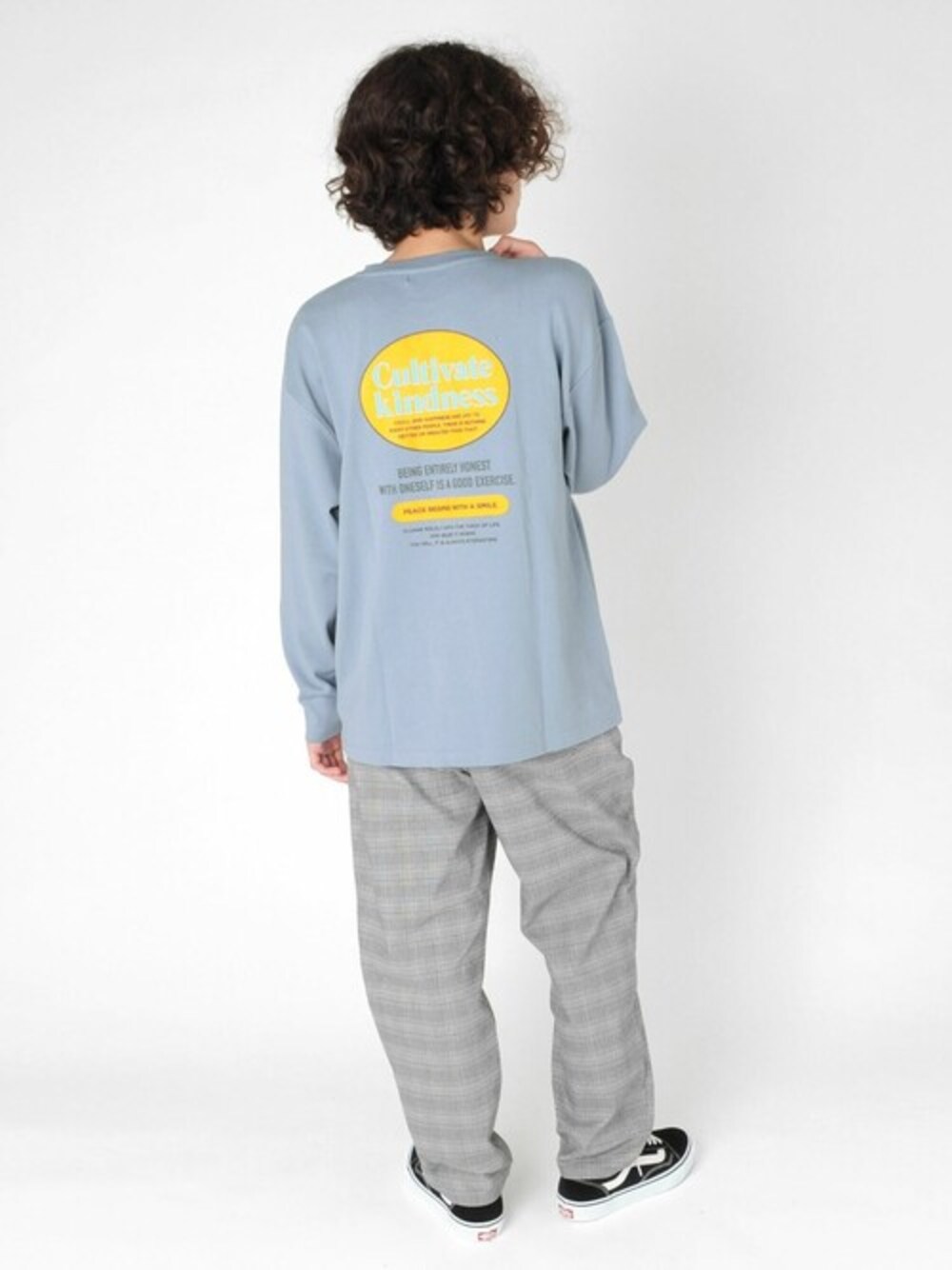 GLAZOSのTシャツ/カットソー「厚手天竺・ドロップショルダー切替オーバルバックプリント長袖Tシャツ」を使ったコーディネート