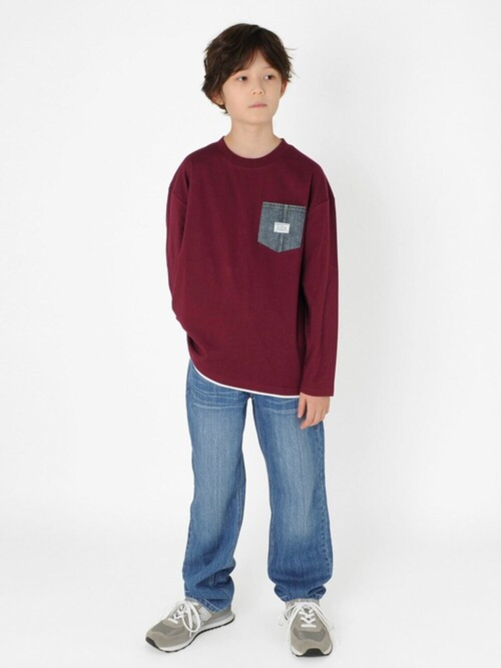 エンジが秋っぽいカラーのTシャツには、 シンプルにデニムを合わせてカジュアルにスタイリング♪ ポケットのデニムとさりげなくリンクさせて、 おしゃれ感を演出◉