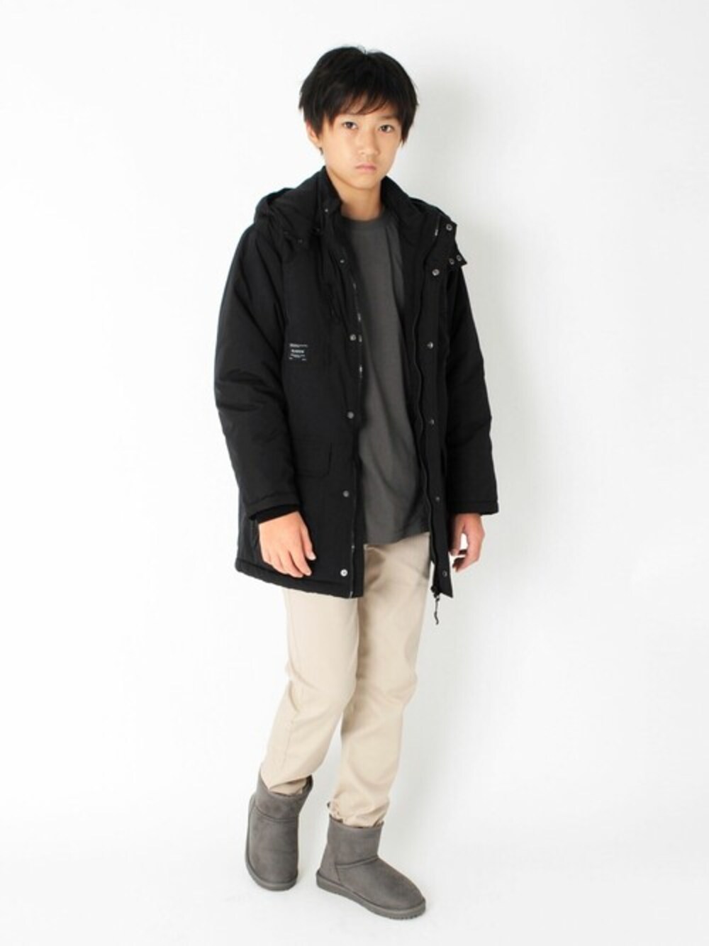 ムートンブーツとTシャツの色味を合わせて、大人っぽい雰囲気◎ ボトムスに明るめのカラーを選ぶことで、コーデが重たくなりすぎず華やかな印象になります。