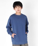 無地のトレーナーと合わせることでチャック柄のシェフパンツを主役に★ くすんだブルーとブラウンの組み合わせが秋らしいコーデに仕上げました!