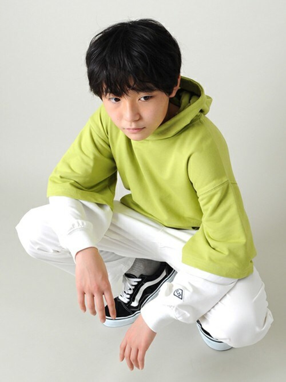 GLAZOSのパーカー「ストレッチミニ裏毛・ドロップショルダーフェイクレイヤードパーカー」を使ったコーディネート