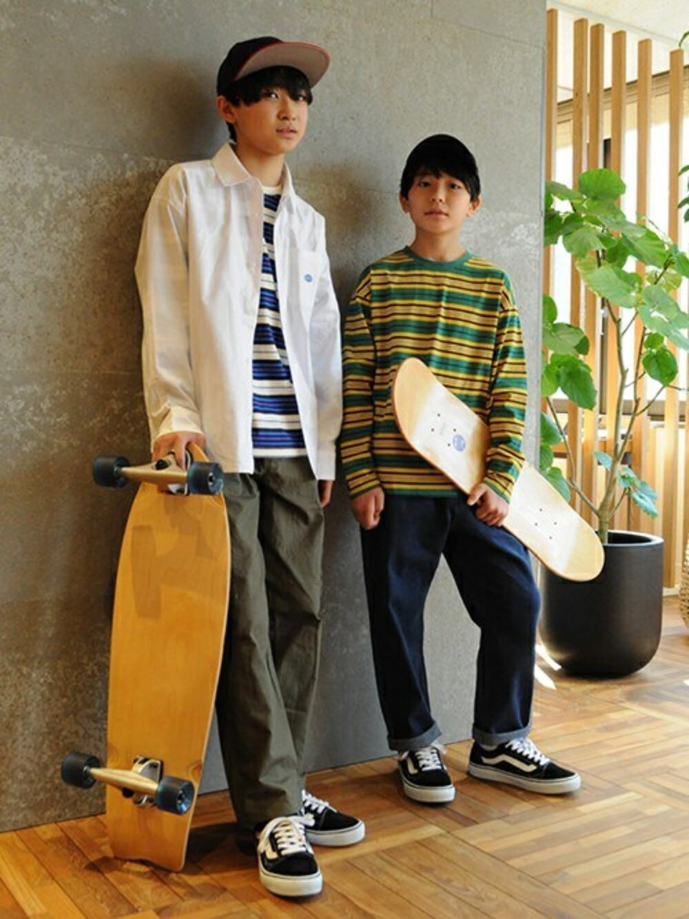 ボーダーTシャツやスニーカーをリンクさせたカジュアルコーデです。 どちらもブルーやグリーンのカラーを取り入れ、色でもリンクさせています♪