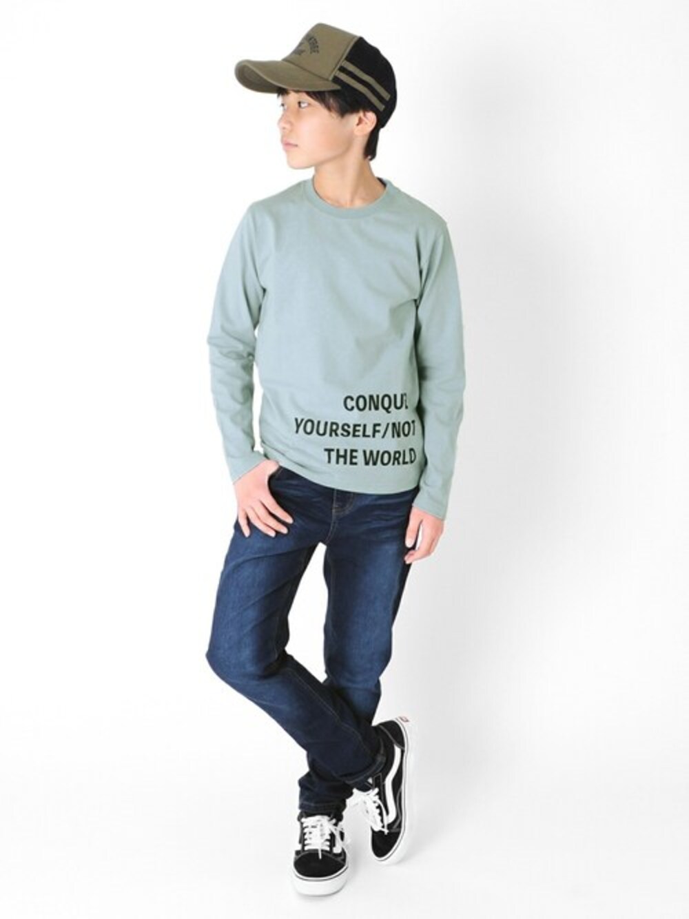 ブルーで合わせたワントーンコーデ。 爽やかで大人ぽくありつつも、キャップでこなれ感を出しました!