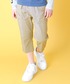 細身のトップスにはこなれた雰囲気の7分丈パンツを。 トップスのブルーを主役に、他の色は抑えました。