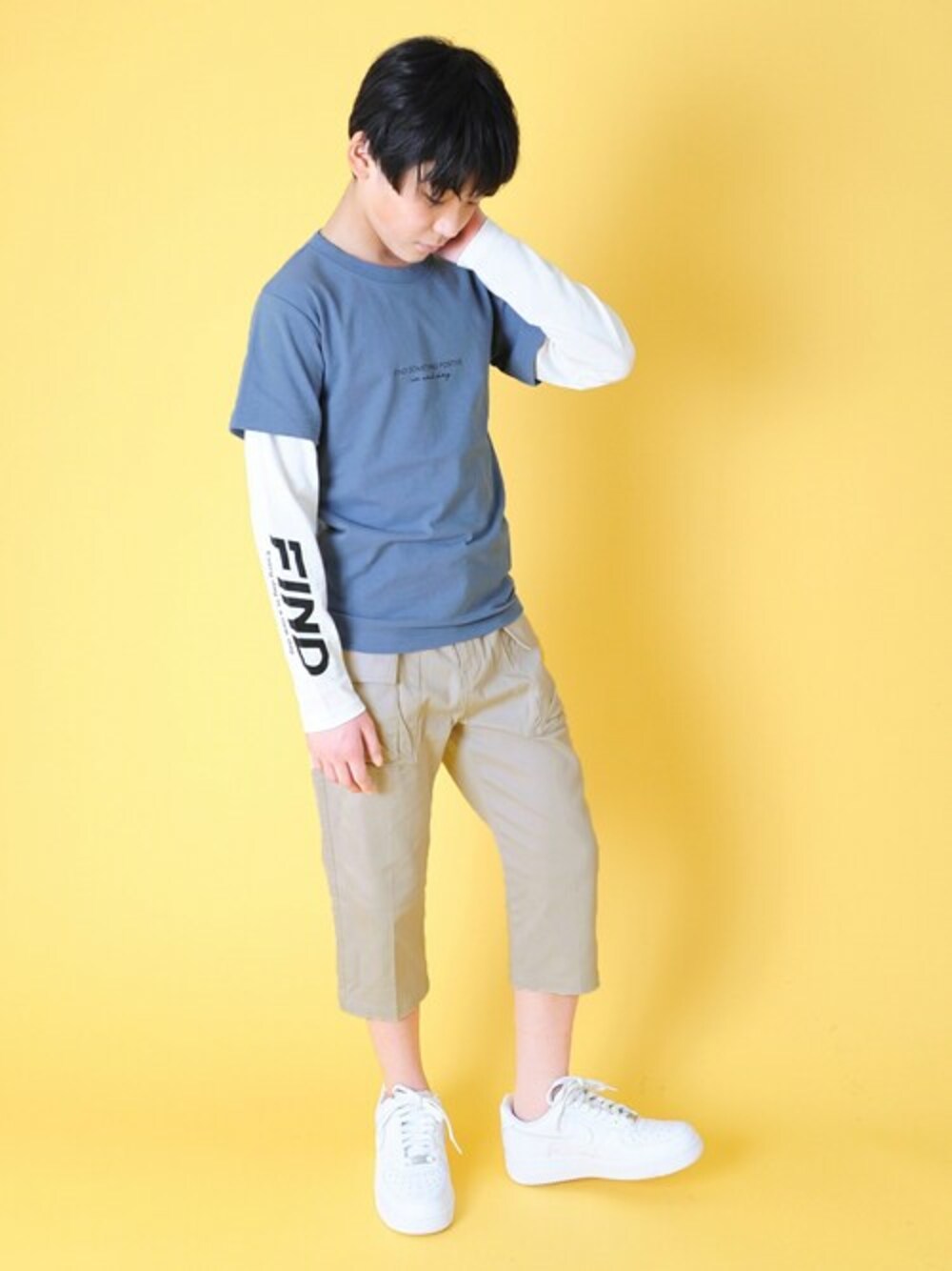 GLAZOSのTシャツ/カットソー「OE天竺・袖ロゴプリントレイヤード長袖Tシャツ」を使ったコーディネート