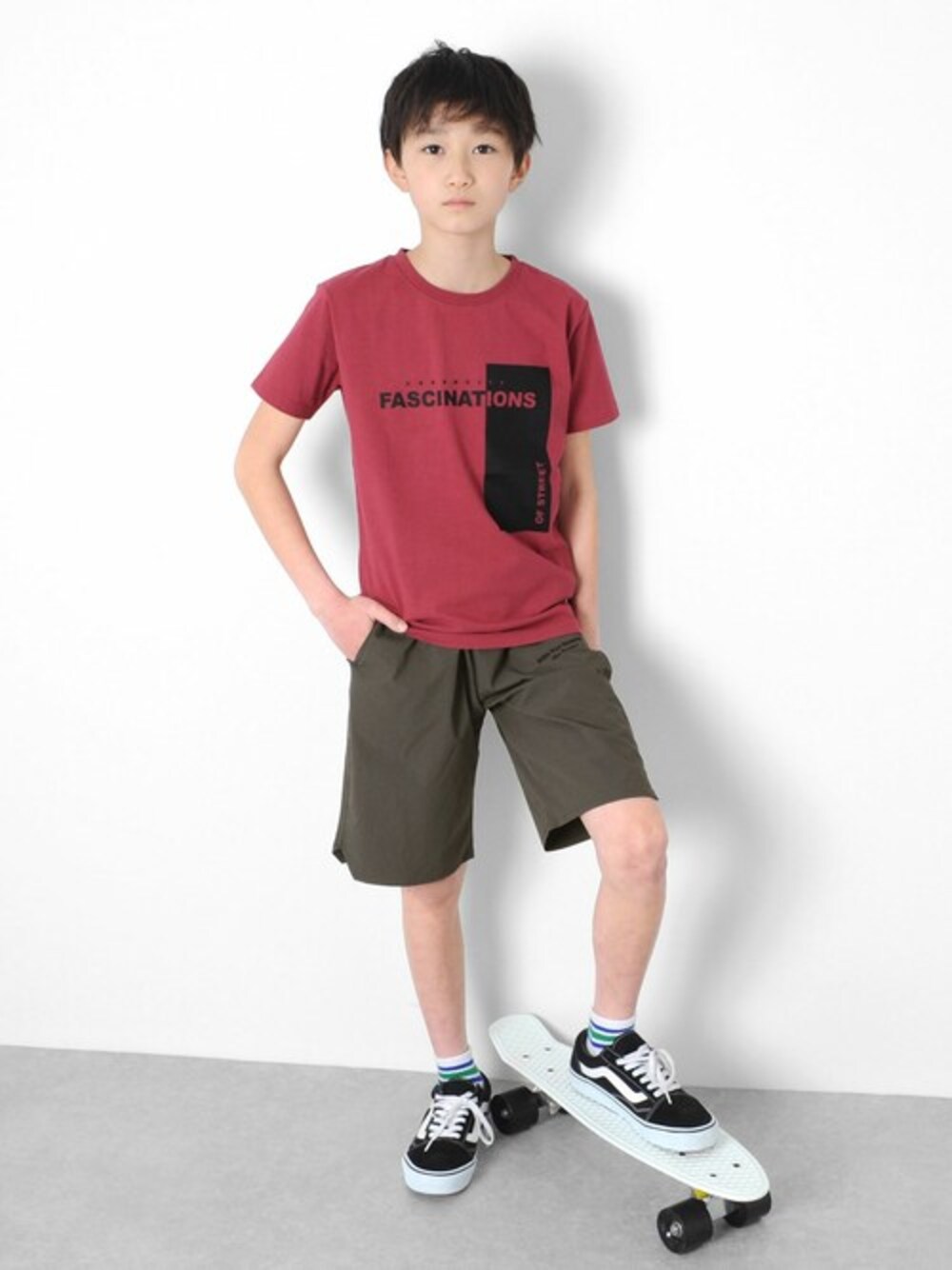 アカのTシャツも、チャコールのボトムと合わせればクールなスタイリングに。 スリムなトップスにゆったりとしたボトムスを合わせて、バランスよく◎